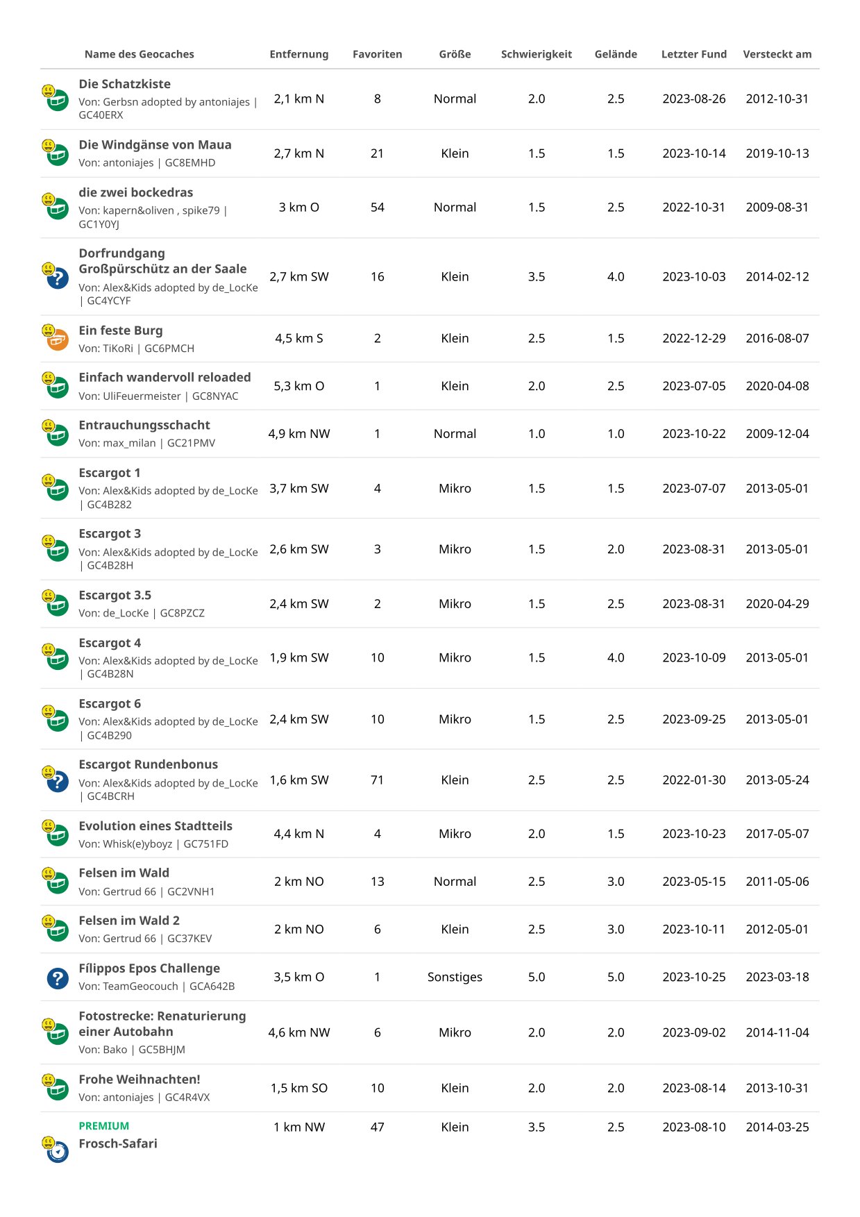 Im Umkreis von 5 km gibt ca. 150 interessante Geocaches verschiedener Schwierigkeitsgrade.